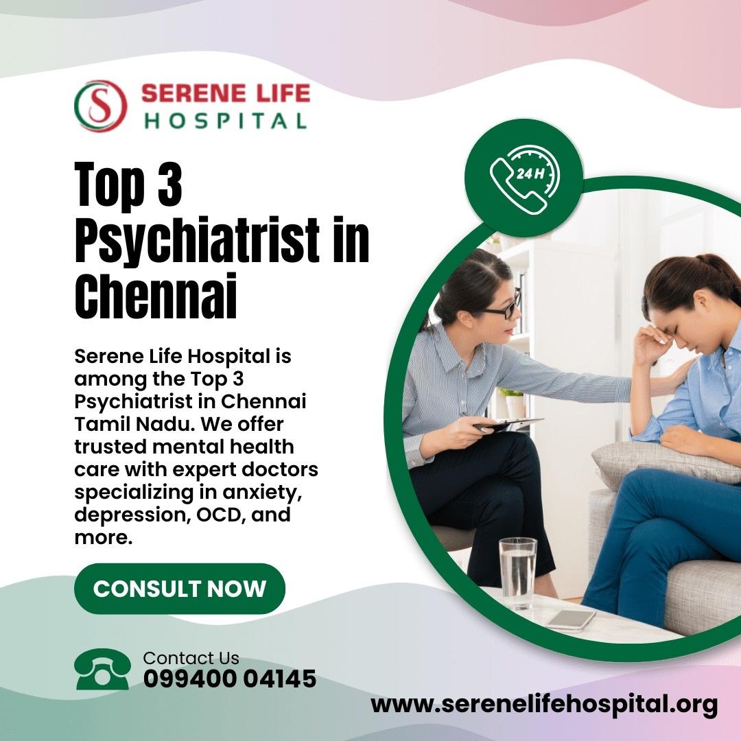 Serene Life Hospital is among the Top 3 Psychiatrist in Chennai for patients seeking reliable mental health care. The team handles complex cases involving depression, anxiety, bipolar conditions, psychosis, and addiction with structured evaluation. Each doctor follows ethical practice, clear documentation, and measured treatment decisions. Care includes assessment, medication management, therapy coordination, and regular progress reviews. Located in Chennai, the hospital maintains privacy, continuity, and transparent communication for every patient. Families receive clear guidance about care plans, risks, and expected outcomes without overpromising. Serene Life Hospital focuses on stability, safety, and practical recovery steps suited to daily life demands in Chennai. Follow-up support helps patients maintain treatment consistency and avoid relapse through planned clinical reviews over time periods.